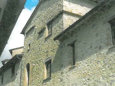 Vendesi a Montone in provincia di Perugia gruppo di immobili ex monastero ex case coloniche formanti un gruppo ben coorrdinato con linee architettoniche armoniose che descrivono le originali costruzioni di tipo medievale.