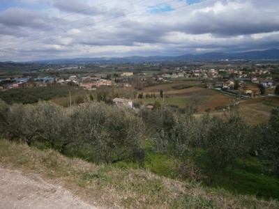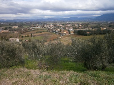 Vendesi terreno con progetto ubicato in Bettona, il progetto prevede la realizzazione di due villette collegate per mezzo di un portico, ogni abitazione è così suddivisa: